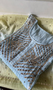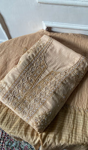 There's a whole lot of people who still want the perfect fit and are never satisfied with the standard size fits. For those people we at Nazrana Chikan offer Chikan Unstitched Kurti Material. Kurti fabrics with different embroidery designs such neck embroidery or daman embroidery.
