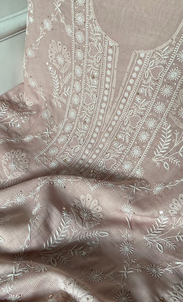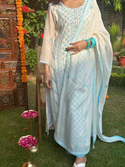 Chikankari suit materials are one of the most prominent suits preferred by women of all ages. At Nazrana Chikan we offer the widest variety of Chikan Unstitched Suit material in all types of fabrics such cotton, georgette, organza, chanderi, viscose and silk.