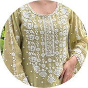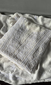 Chikankari suit materials are one of the most prominent suits preferred by women of all ages. At Nazrana Chikan we offer the widest variety of Chikan Unstitched Suit material in all types of fabrics such cotton, georgette, organza, chanderi, viscose and silk.