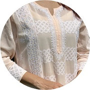 There's a whole lot of people who still want the perfect fit and are never satisfied with the standard size fits. For those people we at Nazrana Chikan offer Chikan Unstitched Kurti Material. Kurti fabrics with different embroidery designs such neck embroidery or daman embroidery.