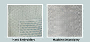 Handmade embroidery lasts longer as the stitches are carefully placed and reinforced by skilled hands. Machine-made embroidery, on the other hand, is prone to fraying and wear over time.