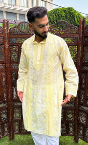 Our collection of lucknowi kurtas for men features classic chikankari patterns on breathable fabrics like cotton, georgette, and silk blends. These kurtas come in full-sleeve and half-sleeve options with fine detailing, ideal for festive wear, poojas, and even weddings.