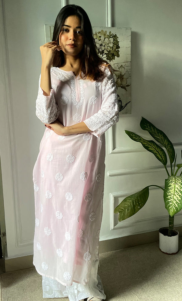 Women's Lucknowi Handcrafted Cotton Chikankari Long Kurti - HONC0325932