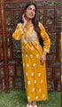 Lucknowi Chikankari kurtas have a charm and elegance that is unique to them. No other form of Indian hand embroidery has that. This delicately embroidered Long Kurti has intricate stitches of chikankari made on a frame by artisans. Usually kurtis like this one takes anywhere between 1 to 2 months to get ready out of which most time is consumed in the hand embroidery and hand printing process. If this is your first Chikankari kurti then be ready to fall in love with this heritage needlecraft and if it’s not your first then probably you’re already in love with the craft. Shop now and embrace the beauty of Nazrana’s heritage needlecraft, redefining sophistication with every product.