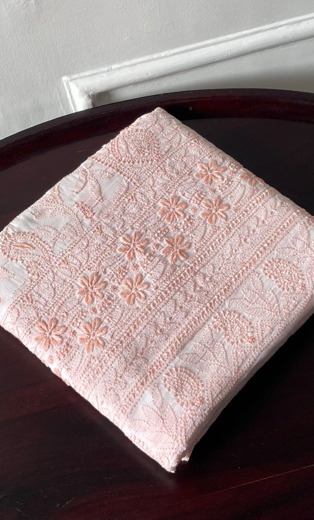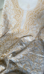 A: Each lucknow chikan suit at Nazrana Chikan is handcrafted by artisans from Lucknow, ensuring authenticity in design, threadwork, and heritage.