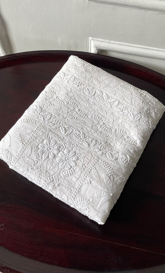 A: Chikankari suit material is perfect for making elegant ethnic suits. At Nazrana Chikan, you can choose from cotton, georgette, or silk-based chikankari suit materials depending on the occasion.
