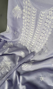 A: Lucknowi chikankari unstitched dress material combines the flexibility of custom tailoring with the charm of traditional Lucknowi embroidery. Nazrana Chikan offers a wide range in this category.
