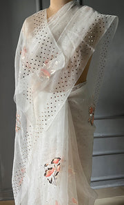 A: A chikankari saree is a traditional hand-embroidered saree originating from Lucknow, known for its delicate threadwork and graceful patterns.