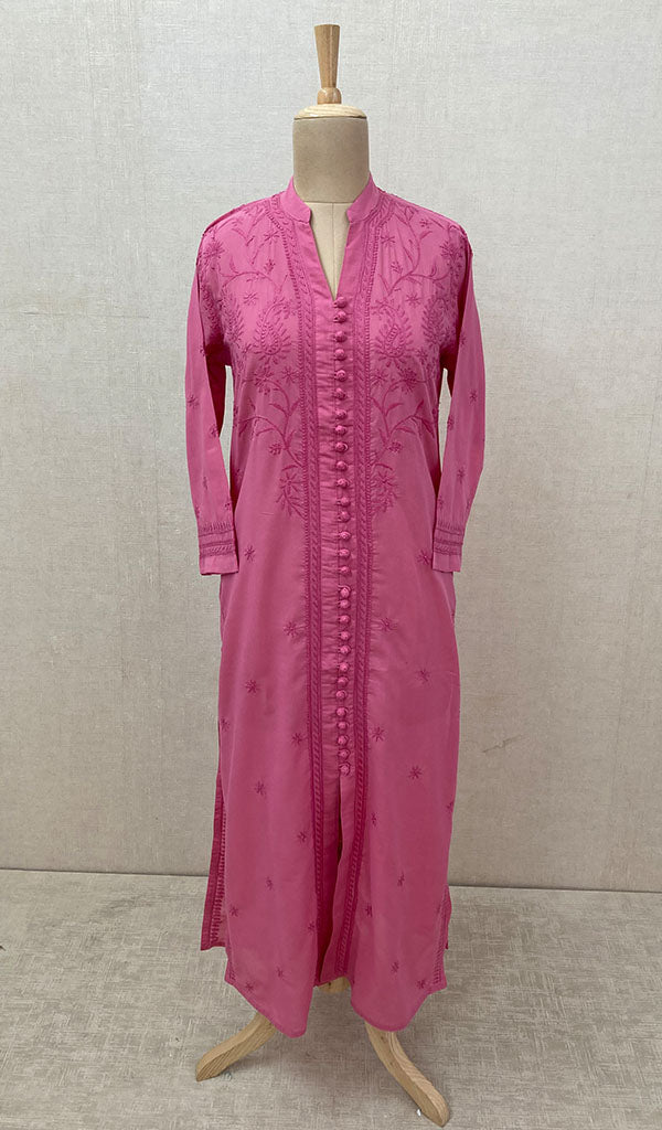 Women's Lakhnavi Handcrafted Dark Pink Cotton Chikankari Kurti - NC068817