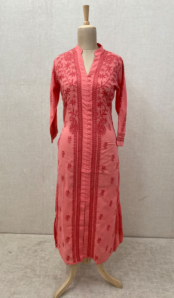 Women's Lakhnavi Handcrafted Pink Cotton Chikankari Kurti - NC068832
