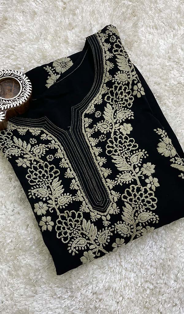 Lucknowi Chikankari kurtas have a charm and elegance that is unique to them. No other form of Indian hand embroidery has that. This delicately embroidered Long Kurti has intricate stitches of chikankari made on a frame by artisans. Usually kurtis like this one takes anywhere between 1 to 2 months to get ready out of which most time is consumed in the hand embroidery and hand printing process. If this is your first Chikankari kurti then be ready to fall in love with this heritage needlecraft and if it’s not your first then probably you’re already in love with the craft. Shop now and embrace the beauty of Nazrana’s heritage needlecraft, redefining sophistication with every product.