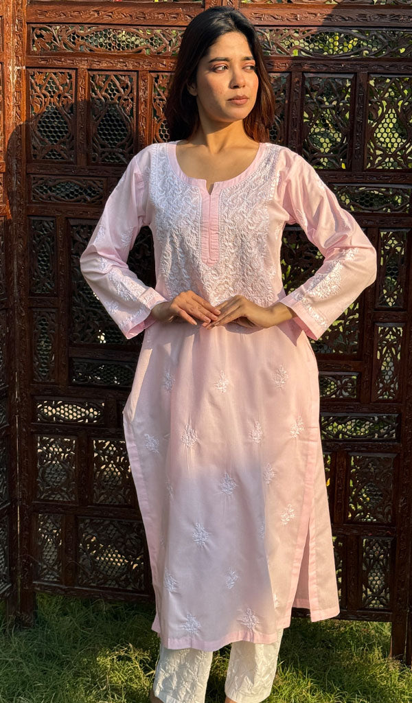 Lucknowi Chikankari kurtas have a charm and elegance that is unique to them. No other form of Indian hand embroidery has that. This delicately embroidered Long Kurti has intricate stitches of chikankari made on a frame by artisans. Usually kurtis like this one takes anywhere between 1 to 2 months to get ready out of which most time is consumed in the hand embroidery and hand printing process. If this is your first Chikankari kurti then be ready to fall in love with this heritage needlecraft and if it’s not your first then probably you’re already in love with the craft. Shop now and embrace the beauty of Nazrana’s heritage needlecraft, redefining sophistication with every product.