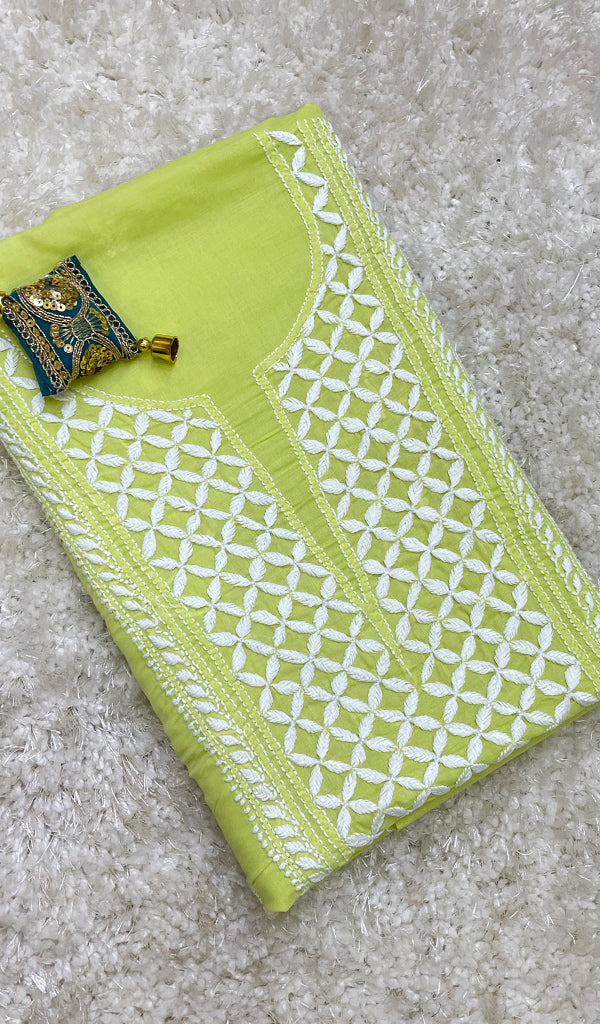 Women's Lakhnavi Handcrafted Cotton Chikankari Unstitched Kurti Fabric -HONC0125710