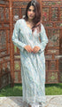 Lucknowi Chikankari kurtas have a charm and elegance that is unique to them. No other form of Indian hand embroidery has that. This delicately embroidered Long Kurti has intricate stitches of chikankari made on a frame by artisans. Usually kurtis like this one takes anywhere between 1 to 2 months to get ready out of which most time is consumed in the hand embroidery and hand printing process. If this is your first Chikankari kurti then be ready to fall in love with this heritage needlecraft and if it’s not your first then probably you’re already in love with the craft. Shop now and embrace the beauty of Nazrana’s heritage needlecraft, redefining sophistication with every product.