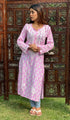 Lucknowi Chikankari kurtas have a charm and elegance that is unique to them. No other form of Indian hand embroidery has that. This delicately embroidered Long Kurti has intricate stitches of chikankari made on a frame by artisans. Usually kurtis like this one takes anywhere between 1 to 2 months to get ready out of which most time is consumed in the hand embroidery and hand printing process. If this is your first Chikankari kurti then be ready to fall in love with this heritage needlecraft and if it’s not your first then probably you’re already in love with the craft. Shop now and embrace the beauty of Nazrana’s heritage needlecraft, redefining sophistication with every product.