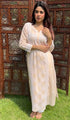 Lucknowi Chikankari kurtas have a charm and elegance that is unique to them. No other form of Indian hand embroidery has that. This delicately embroidered Long Kurti has intricate stitches of chikankari made on a frame by artisans. Usually kurtis like this one takes anywhere between 1 to 2 months to get ready out of which most time is consumed in the hand embroidery and hand printing process. If this is your first Chikankari kurti then be ready to fall in love with this heritage needlecraft and if it’s not your first then probably you’re already in love with the craft. Shop now and embrace the beauty of Nazrana’s heritage needlecraft, redefining sophistication with every product.