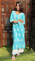 Lucknowi Chikankari kurtas have a charm and elegance that is unique to them. No other form of Indian hand embroidery has that. This delicately embroidered Long Kurti has intricate stitches of chikankari made on a frame by artisans. Usually kurtis like this one takes anywhere between 1 to 2 months to get ready out of which most time is consumed in the hand embroidery and hand printing process. If this is your first Chikankari kurti then be ready to fall in love with this heritage needlecraft and if it’s not your first then probably you’re already in love with the craft. Shop now and embrace the beauty of Nazrana’s heritage needlecraft, redefining sophistication with every product.