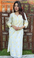 Neck type – Round NeckLucknowi Chikankari kurtas have a charm and elegance that is unique to them. No other form of Indian hand embroidery has that. This delicately embroidered Long Kurti has intricate stitches of chikankari made on a frame by artisans. Usually kurtis like this one takes anywhere between 1 to 2 months to get ready out of which most time is consumed in the hand embroidery and hand printing process. If this is your first Chikankari kurti then be ready to fall in love with this heritage needlecraft and if it’s not your first then probably you’re already in love with the craft. Shop now and embrace the beauty of Nazrana’s heritage needlecraft, redefining sophistication with every product.