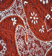 Hand-carved wooden blocks are used to mark out elaborate pattern for this artistry.Awadh’s royal regalia, paisleys, floral and symmetrical motifs, inspired by Persian art, define Chikankari embroidery. Chikan motifs are also linked and inspired by the Taj Mahal’s floral and geometrical patterns in Pietra dura. A single motif using different type of stitch forms is worked upon by different specialists for each stitch to give the fabric a unique air, unparalleled in any other form of Hand Embroidery.
