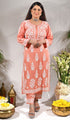 In the recent years stitched sets and Co-ord sets have become very trendy and in-fashion. In Lucknowi Chikankari also stitched sets have taken the center stage as they offer convenience without compromising on the traditional artistry. This stitched set is one such fine example, it has delicate thread work along with meticulous attention to detail. Shop now and embrace the beauty of Nazrana’s heritage needlecraft, redefining sophistication with every product.