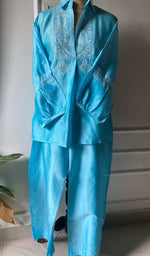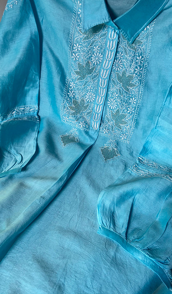 In the recent years stitched sets and Co-ord sets have become very trendy and in-fashion. In Lucknowi Chikankari also stitched sets have taken the center stage as they offer convenience without compromising on the traditional artistry. This stitched set is one such fine example, it has delicate thread work along with meticulous attention to detail. Shop now and embrace the beauty of Nazrana’s heritage needlecraft, redefining sophistication with every product.
