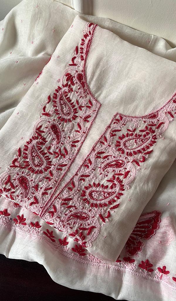 The thing about Lakhnavi Chikankari Suits is that most of them are one of a kind. Once a design is sold out, it’s almost impossible to find a replica or even a similar design anywhere in the market or online. This is what makes Chikankari suit fabrics unique just like this one. It’s made with the finest chikankari stitches by extremely skilled craftsmen of Lucknow. The advantage of buying an unstitched Chikankari suit fabric is that you can get it stitched and customized as per your personal style. Shop now and embrace the beauty of Nazrana’s heritage needlecraft, redefining sophistication with every product.