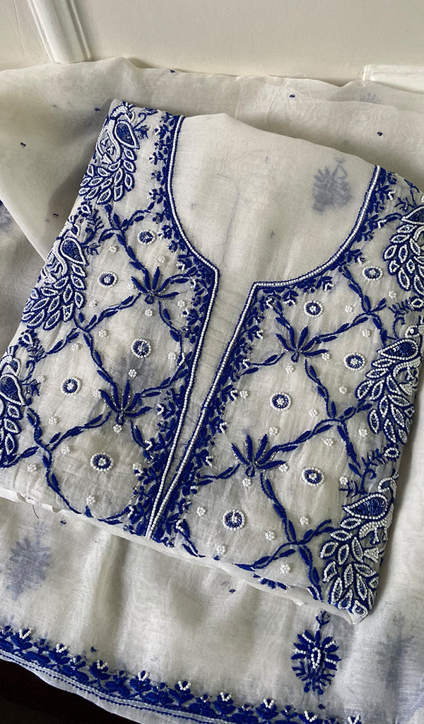 The thing about Lakhnavi Chikankari Suits is that most of them are one of a kind. Once a design is sold out, it’s almost impossible to find a replica or even a similar design anywhere in the market or online. This is what makes Chikankari suit fabrics unique just like this one. It’s made with the finest chikankari stitches by extremely skilled craftsmen of Lucknow. The advantage of buying an unstitched Chikankari suit fabric is that you can get it stitched and customized as per your personal style. Shop now and embrace the beauty of Nazrana’s heritage needlecraft, redefining sophistication with every product.