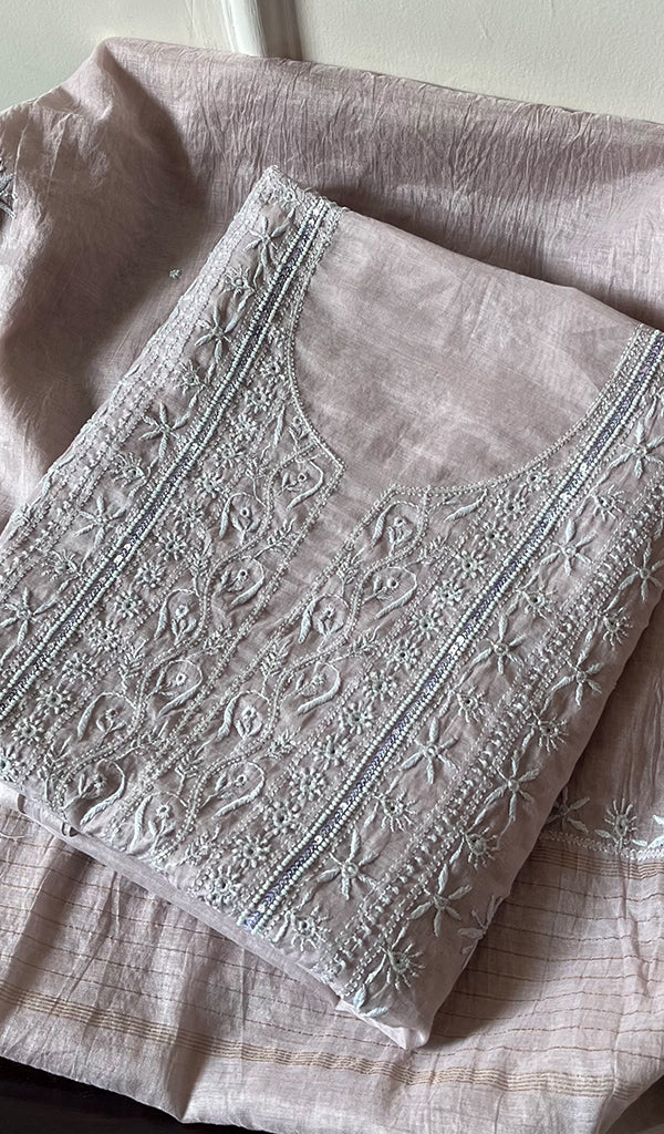 The thing about Lakhnavi Chikankari Suits is that most of them are one of a kind. Once a design is sold out, it’s almost impossible to find a replica or even a similar design anywhere in the market or online. This is what makes Chikankari suit fabrics unique just like this one. It’s made with the finest chikankari stitches by extremely skilled craftsmen of Lucknow. The advantage of buying an unstitched Chikankari suit fabric is that you can get it stitched and customized as per your personal style. Shop now and embrace the beauty of Nazrana’s heritage needlecraft, redefining sophistication with every product.