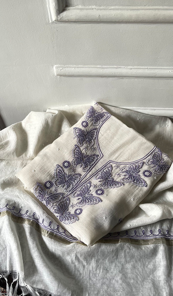 The thing about Lakhnavi Chikankari Suits is that most of them are one of a kind. Once a design is sold out, it’s almost impossible to find a replica or even a similar design anywhere in the market or online. This is what makes Chikankari suit fabrics unique just like this one. It’s made with the finest chikankari stitches by extremely skilled craftsmen of Lucknow. The advantage of buying an unstitched Chikankari suit fabric is that you can get it stitched and customized as per your personal style. Shop now and embrace the beauty of Nazrana’s heritage needlecraft, redefining sophistication with every product