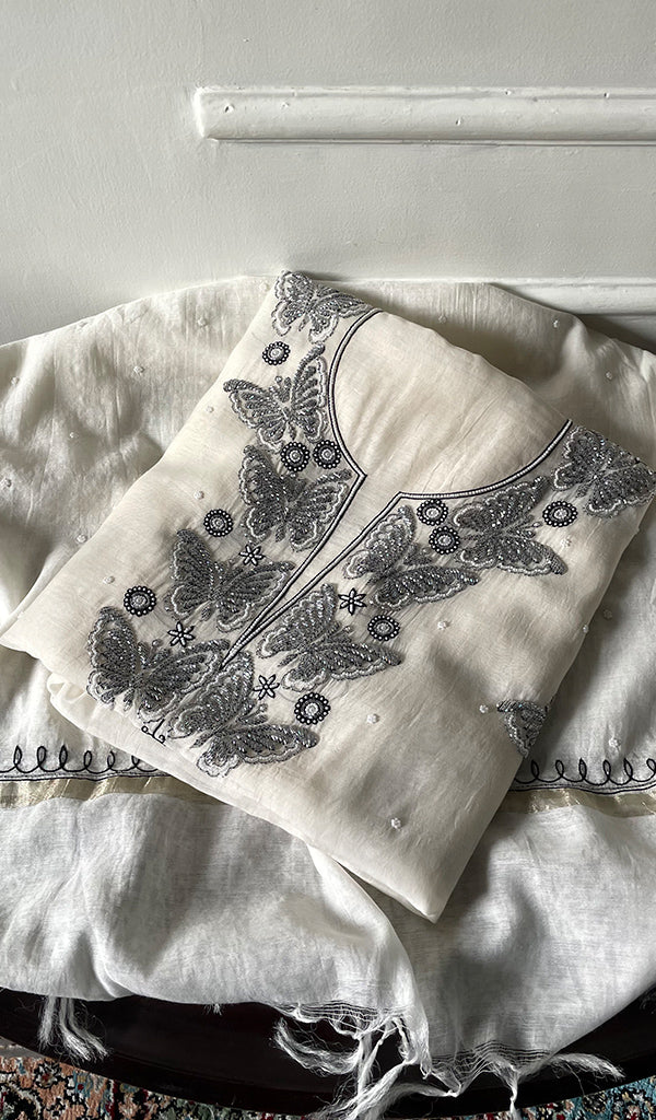 The thing about Lakhnavi Chikankari Suits is that most of them are one of a kind. Once a design is sold out, it’s almost impossible to find a replica or even a similar design anywhere in the market or online. This is what makes Chikankari suit fabrics unique just like this one. It’s made with the finest chikankari stitches by extremely skilled craftsmen of Lucknow. The advantage of buying an unstitched Chikankari suit fabric is that you can get it stitched and customized as per your personal style. Shop now and embrace the beauty of Nazrana’s heritage needlecraft, redefining sophistication with every product
