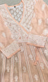 Lucknowi Chikankari kurtas have a charm and elegance that is unique to them. No other form of Indian hand embroidery has that. This delicately embroidered Long Kurti has intricate stitches of chikankari made on a frame by artisans. Usually kurtis like this one takes anywhere between 1 to 2 months to get ready out of which most time is consumed in the hand embroidery and hand printing process. If this is your first Chikankari kurti then be ready to fall in love with this heritage needlecraft and if it’s not your first then probably you’re already in love with the craft. Shop now and embrace the beauty of Nazrana’s heritage needlecraft, redefining sophistication with every product.