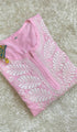 Lucknowi Chikankari kurtas have a charm and elegance that is unique to them. No other form of Indian hand embroidery has that. This delicately embroidered Long Kurti has intricate stitches of chikankari made on a frame by artisans. Usually kurtis like this one takes anywhere between 1 to 2 months to get ready out of which most time is consumed in the hand embroidery and hand printing process. If this is your first Chikankari kurti then be ready to fall in love with this heritage needlecraft and if it’s not your first then probably you’re already in love with the craft. Shop now and embrace the beauty of Nazrana’s heritage needlecraft, redefining sophistication with every product.