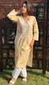 Lucknowi Chikankari kurtas have a charm and elegance that is unique to them. No other form of Indian hand embroidery has that. This delicately embroidered Long Kurti has intricate stitches of chikankari made on a frame by artisans. Usually kurtis like this one takes anywhere between 1 to 2 months to get ready out of which most time is consumed in the hand embroidery and hand printing process. If this is your first Chikankari kurti then be ready to fall in love with this heritage needlecraft and if it’s not your first then probably you’re already in love with the craft. Shop now and embrace the beauty of Nazrana’s heritage needlecraft, redefining sophistication with every product.