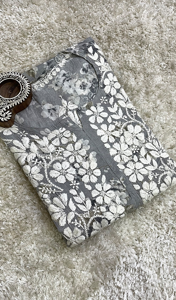 Lucknowi Chikankari kurtas have a charm and elegance that is unique to them. No other form of Indian hand embroidery has that. This delicately embroidered Long Kurti has intricate stitches of chikankari made on a frame by artisans. Usually kurtis like this one takes anywhere between 1 to 2 months to get ready out of which most time is consumed in the hand embroidery and hand printing process. If this is your first Chikankari kurti then be ready to fall in love with this heritage needlecraft and if it’s not your first then probably you’re already in love with the craft. Shop now and embrace the beauty of Nazrana’s heritage needlecraft, redefining sophistication with every product.