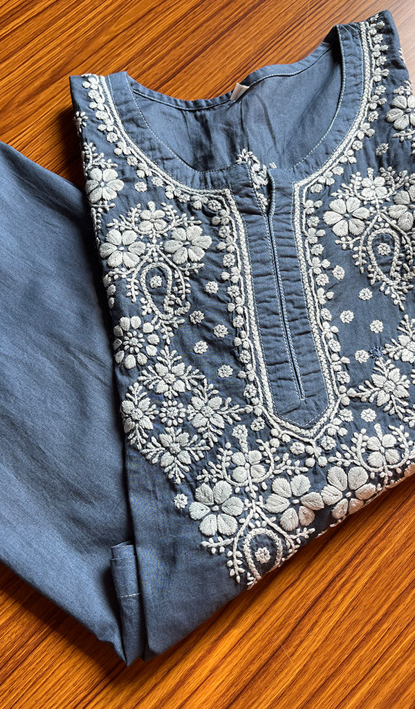 Lucknowi Chikankari kurtas have a charm and elegance that is unique to them. No other form of Indian hand embroidery has that. This delicately embroidered Long Kurti has intricate stitches of chikankari made on a frame by artisans. Usually kurtis like this one takes anywhere between 1 to 2 months to get ready out of which most time is consumed in the hand embroidery and hand printing process. If this is your first Chikankari kurti then be ready to fall in love with this heritage needlecraft and if it’s not your first then probably you’re already in love with the craft. Shop now and embrace the beauty of Nazrana’s heritage needlecraft, redefining sophistication with every product.