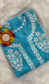Lucknowi Chikankari kurtas have a charm and elegance that is unique to them. No other form of Indian hand embroidery has that. This delicately embroidered Long Kurti has intricate stitches of chikankari made on a frame by artisans. Usually kurtis like this one takes anywhere between 1 to 2 months to get ready out of which most time is consumed in the hand embroidery and hand printing process. If this is your first Chikankari kurti then be ready to fall in love with this heritage needlecraft and if it’s not your first then probably you’re already in love with the craft. Shop now and embrace the beauty of Nazrana’s heritage needlecraft, redefining sophistication with every product.