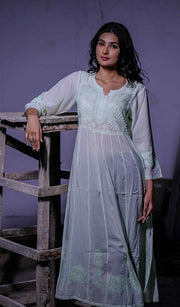 A: The latest designs in chikankari kurti for women feature pastel A-line styles, Anarkali silhouettes with jaali work, straight-cut kurtis in bold hues, and modern co-ord sets. Embellishments like sequins, mirror work, and layered hemlines are trending, adding a contemporary touch to traditional embroidery.