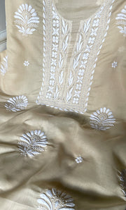 A: Lucknowi chikankari unstitched dress material combines the flexibility of custom tailoring with the charm of traditional Lucknowi embroidery. Nazrana Chikan offers a wide range in this category.