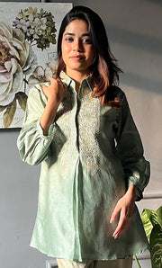 A: A chikan kurti set generally features a shorter top (kurti), while a chikan kurta set includes a longer kurta. Both are beautifully embroidered and available at Nazrana Chikan.