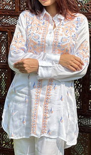A: A chikan kurta set typically includes a long hand-embroidered kurta and a matching bottom. Nazrana Chikan offers these in a range of colors and sizes for women.