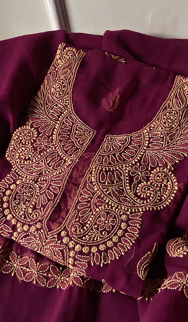 Alia Women's Lakhnavi Handcrafted Faux-Georgette Chikankari Semi-Stiched Suit Material - HONC0239597