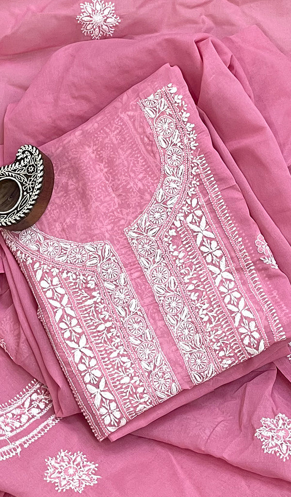 The thing about Lakhnavi Chikankari Suits is that most of them are one of a kind. Once a design is sold out, it’s almost impossible to find a replica or even a similar design anywhere in the market or online. This is what makes Chikankari suit fabrics unique just like this one. It’s made with the finest chikankari stitches by extremely skilled craftsmen of Lucknow. The advantage of buying an unstitched Chikankari suit fabric is that you can get it stitched and customized as per your personal style. Shop now and embrace the beauty of Nazrana’s heritage needlecraft, redefining sophistication with every product