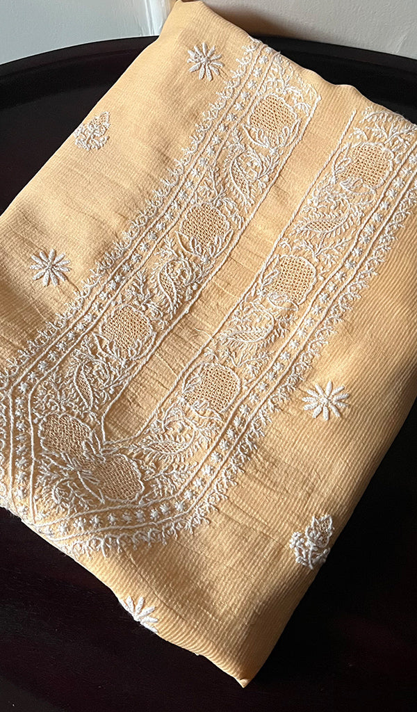 Lucknowi chikankari Gents kurtas have become a preferred ethnic wear choice for Men. Be it Diwali, Holi or any special occasion, Lucknowi Kurtas have become the go-to ethnic wear option for men. Most of the stitched gents chikankari kurtas available both online and offline might not suit all body types but with Unstitched Gents Chikan kurta fabric one has the freedom to get it stitched as per their own comfort and body type. This Chikankari kurta material has been made on the finest fabric with intricately embroidered bootis. Usually a Kurta fabric like this takes anywhere between 1 to 2 months to get ready. Shop now and embrace the beauty of Nazrana’s heritage needlecraft, redefining sophistication with every product.