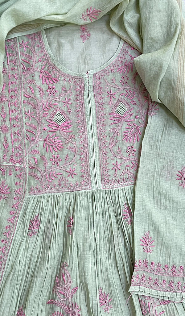 The thing about Lakhnavi Chikankari Suits is that most of them are one of a kind. Once a design is sold out, it’s almost impossible to find a replica or even a similar design anywhere in the market or online. This is what makes Chikankari suit fabrics unique just like this one. It’s made with the finest chikankari stitches by extremely skilled craftsmen of Lucknow. The advantage of buying an unstitched Chikankari suit fabric is that you can get it stitched and customized as per your personal style. Shop now and embrace the beauty of Nazrana’s heritage needlecraft, redefining sophistication with every product.