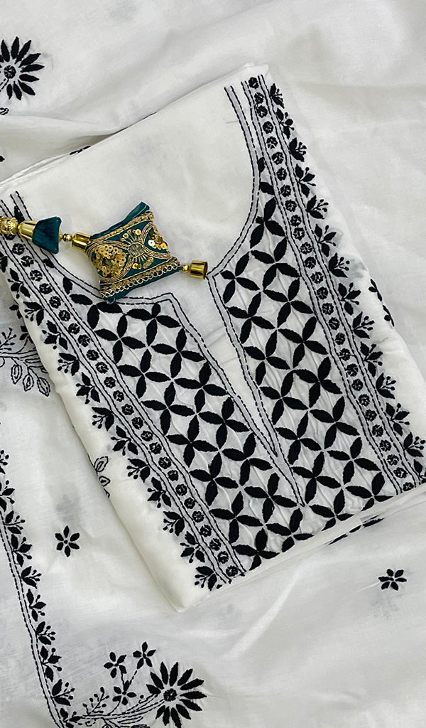 The thing about Lakhnavi Chikankari Suits is that most of them are one of a kind. Once a design is sold out, it’s almost impossible to find a replica or even a similar design anywhere in the market or online. This is what makes Chikankari suit fabrics unique just like this one. It’s made with the finest chikankari stitches by extremely skilled craftsmen of Lucknow. The advantage of buying an unstitched Chikankari suit fabric is that you can get it stitched and customized as per your personal style. Shop now and embrace the beauty of Nazrana’s heritage needlecraft, redefining sophistication with every product.
