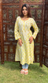 Lucknowi Chikankari kurtas have a charm and elegance that is unique to them. No other form of Indian hand embroidery has that. This delicately embroidered Long Kurti has intricate stitches of chikankari made on a frame by artisans. Usually kurtis like this one takes anywhere between 1 to 2 months to get ready out of which most time is consumed in the hand embroidery and hand printing process. If this is your first Chikankari kurti then be ready to fall in love with this heritage needlecraft and if it’s not your first then probably you’re already in love with the craft. Shop now and embrace the beauty of Nazrana’s heritage needlecraft, redefining sophistication with every product.