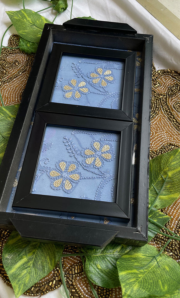 Handcrafted Chikankari Tray with Two Coasters – Wooden Frame - HONC0237173