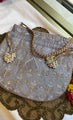 Elevate your ethnic style with this stunning Grey chikankari embroidered potli bag, beautifully adorned with intricate hand embroidery in gold and ivory threads. The bag features elegant golden bead tassels and a smooth satin inner lining that adds a luxurious touch. Perfect for weddings, festive occasions, or gifting, this potli combines traditional craftsmanship with modern elegance.