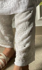 - Elegant Design: Our Chikan Palazzos feature timeless designs that effortlessly blend traditional and modern elements. The elegant embroidery patterns and flattering cuts make them a versatile addition to your wardrobe, suitable for both casual and formal occasions.
