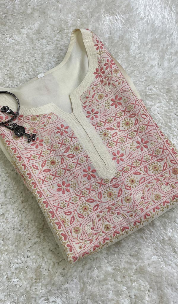 勒克瑙手工制作丝绸 Chikankari Kurti - HONC0130099